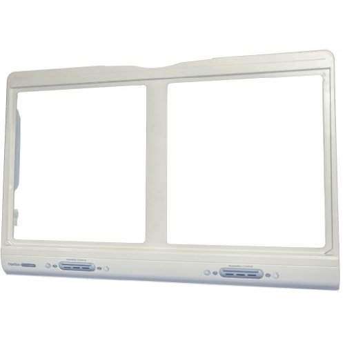 Crisper drawer cover frame supports the crisper drawer and holds the shelf that covers the crisper drawer. Order the shelf insert separately if needed.
