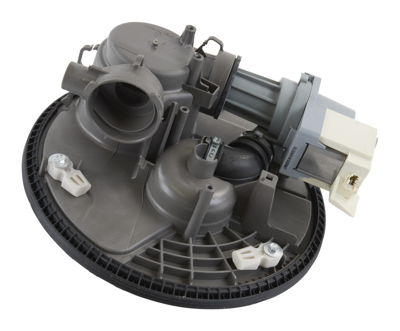 This is the genuine OEM circulation pump and motor assembly used in many Whirlpool-family dishwashers. It pulls water from the sump and pushes it through spray arms to clean dishes. If the motor fails, the dishwasher may fill but not spray, make humming noises, or fail cycles. Replacing this assembly restores water circulation and proper cleaning performance.